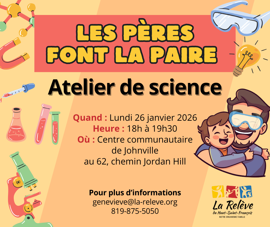 Dans le cadre des activités des pères font la paire, on vous invite à venir participer à une soirée scientifique.