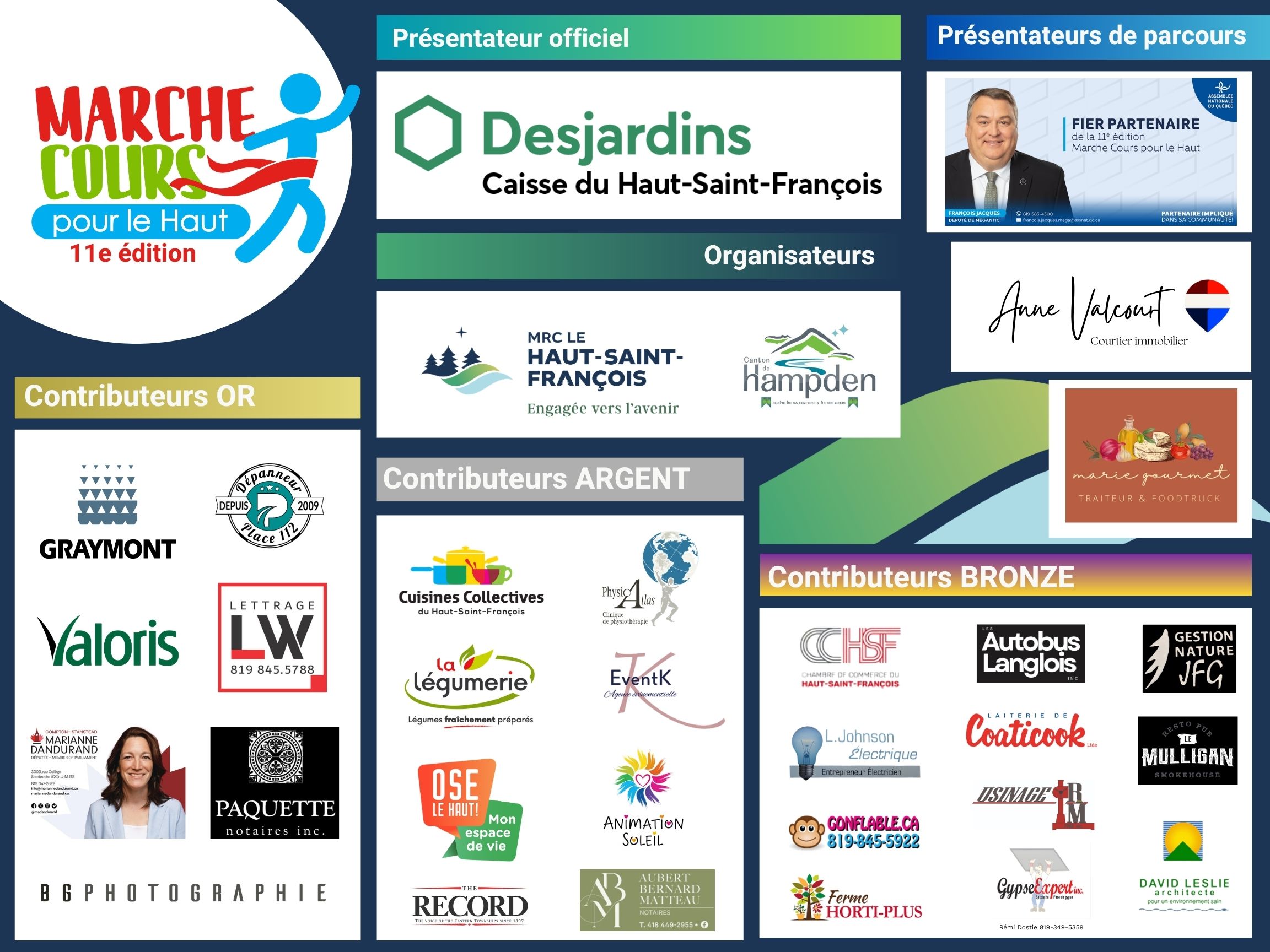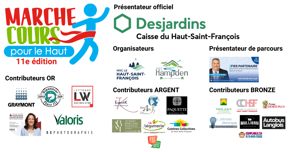 MARCHE / COURS POUR LE HAUT, présenté par la Caisse Desjardins du Haut-Saint-François, remercie ses partenaires